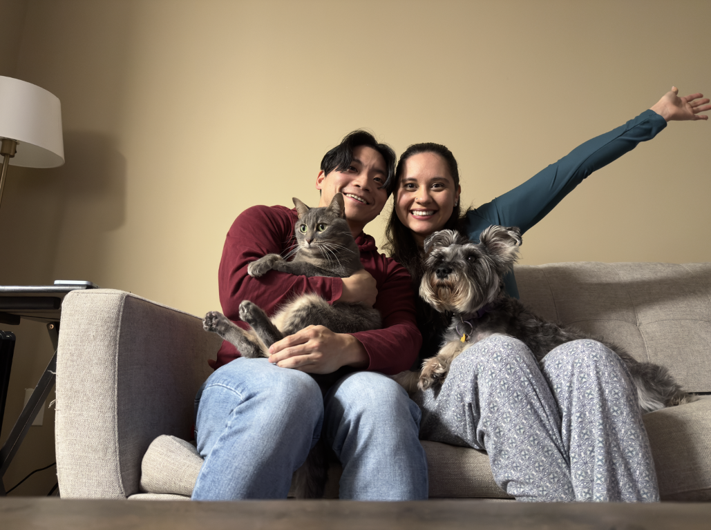 We moved in together soon after and have been building a life we love ever since, alongside our fur kids Milo and Sadie. We can’t wait to celebrate our next chapter with you!